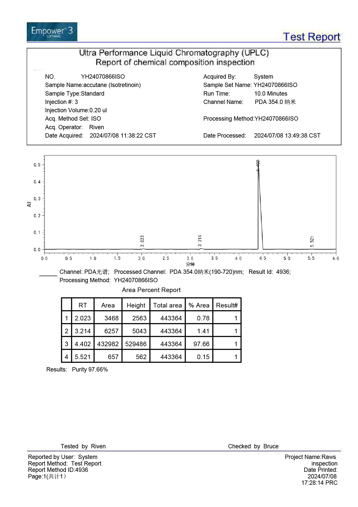 Current stock purity 97.66% tested on 2024/7/8.