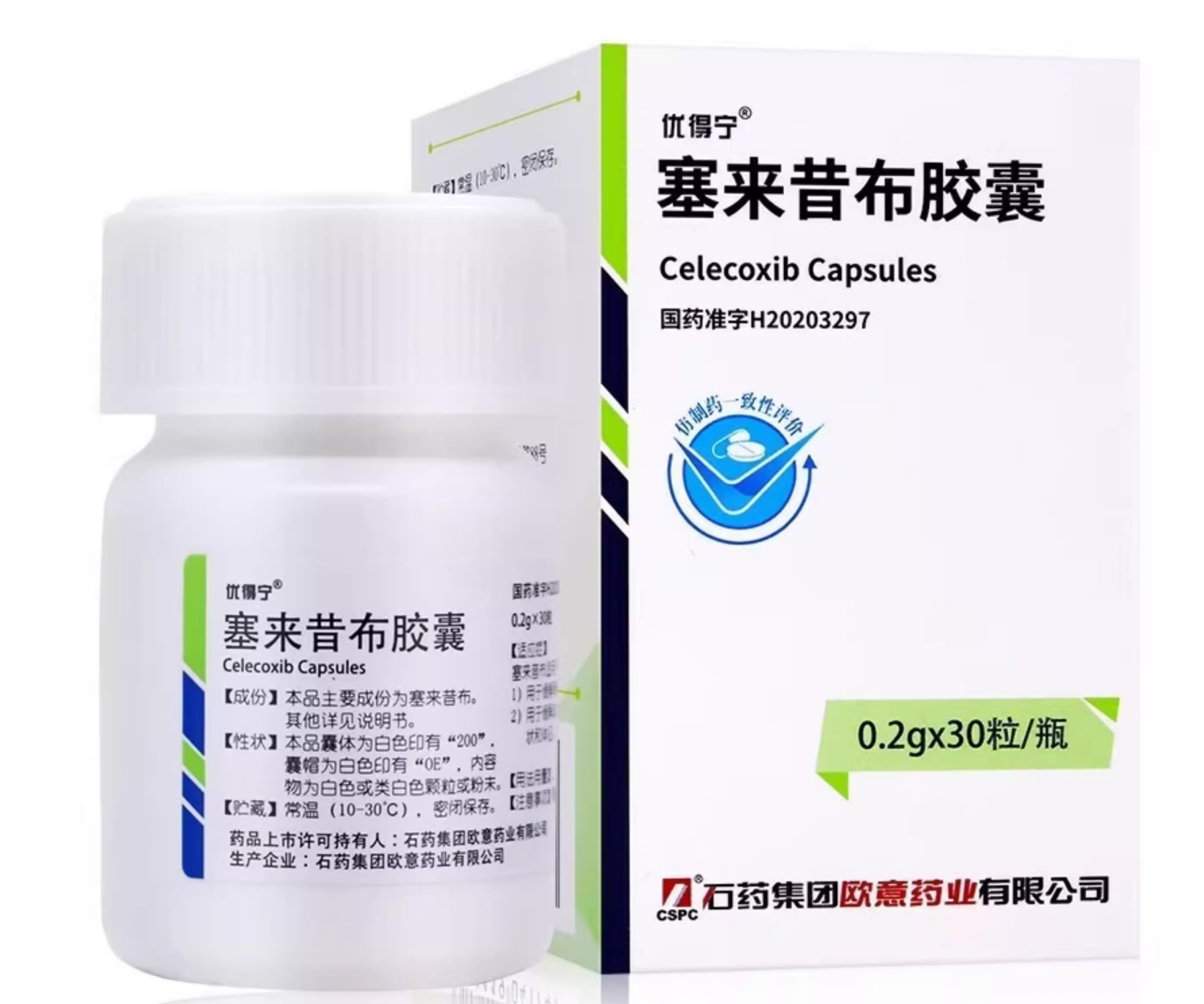 Celecoxib, sold under the brand name Celebrex among others, is a COX-2 inhibitor and nonsteroidal anti-inflammatory drug (NSAID). It is used to treat the pain and inflammation in osteoarthritis, acute pain in adults, rheumatoid arthritis, psoriatic arthritis, ankylosing spondylitis, painful menstruation, and juvenile rheumatoid arthritis. It may also be used to decrease the risk of colorectal adenomas in people with familial adenomatous polyposis.It is taken by mouth.Benefits are typically seen within an hour.